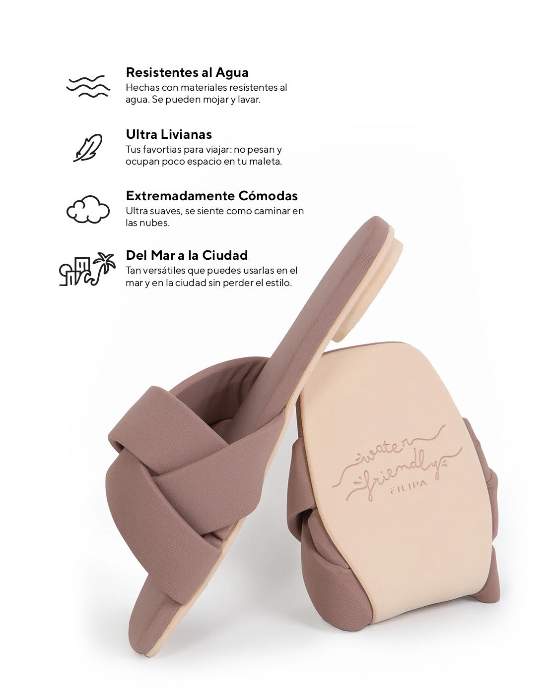 La suela de goma acolchada ofrece confort durante todo el día, ya sea en la playa, la piscina o recorriendo la ciudad. Versátiles y funcionales, son ideales para pasar del día bajo el sol a una salida nocturna con estilo y frescura.