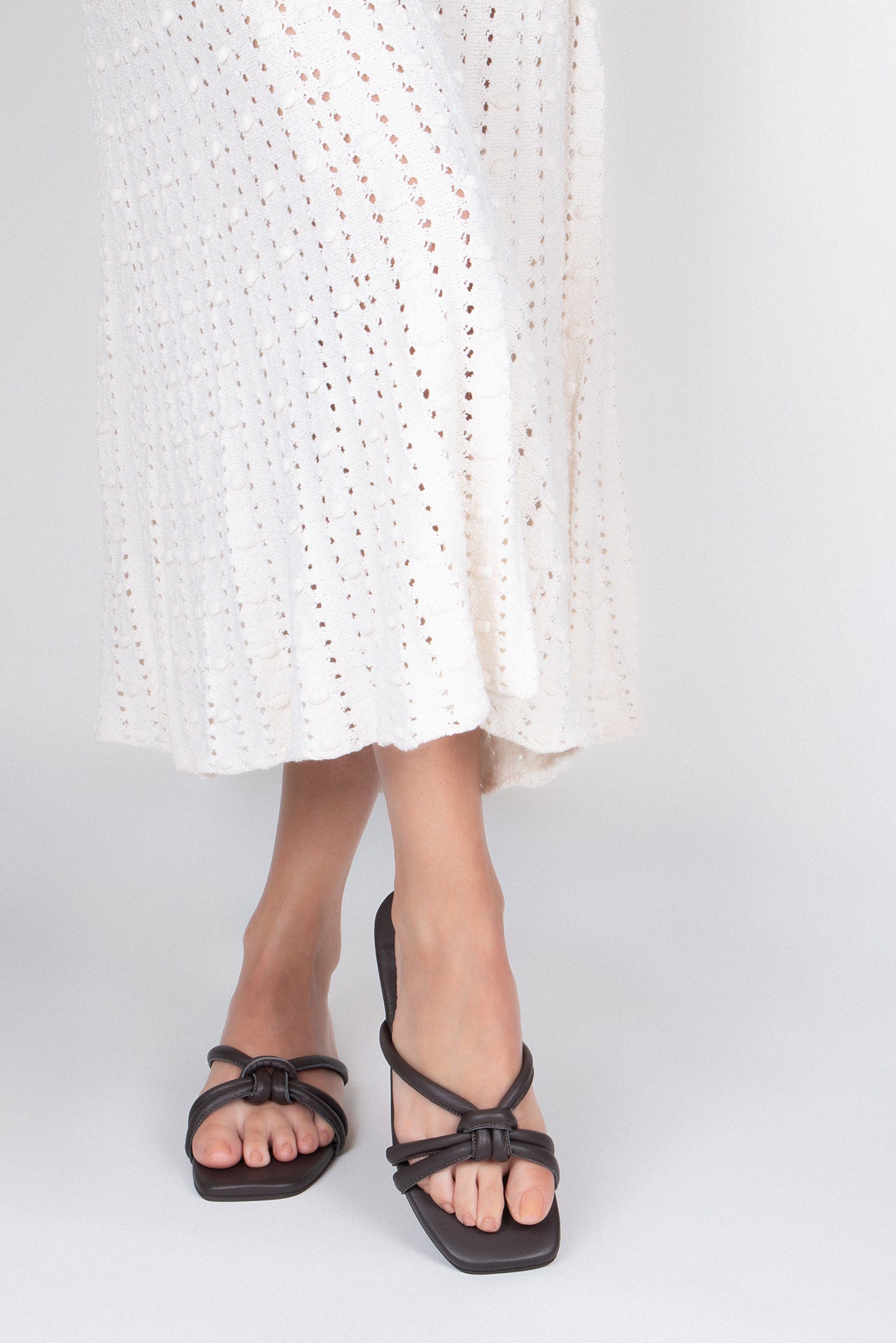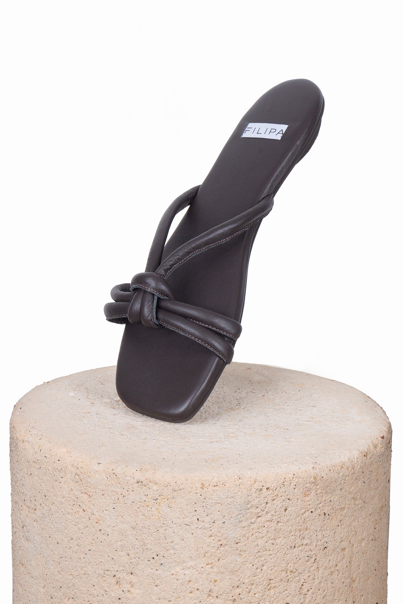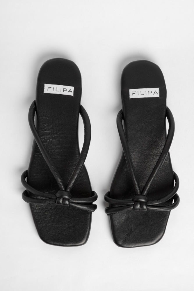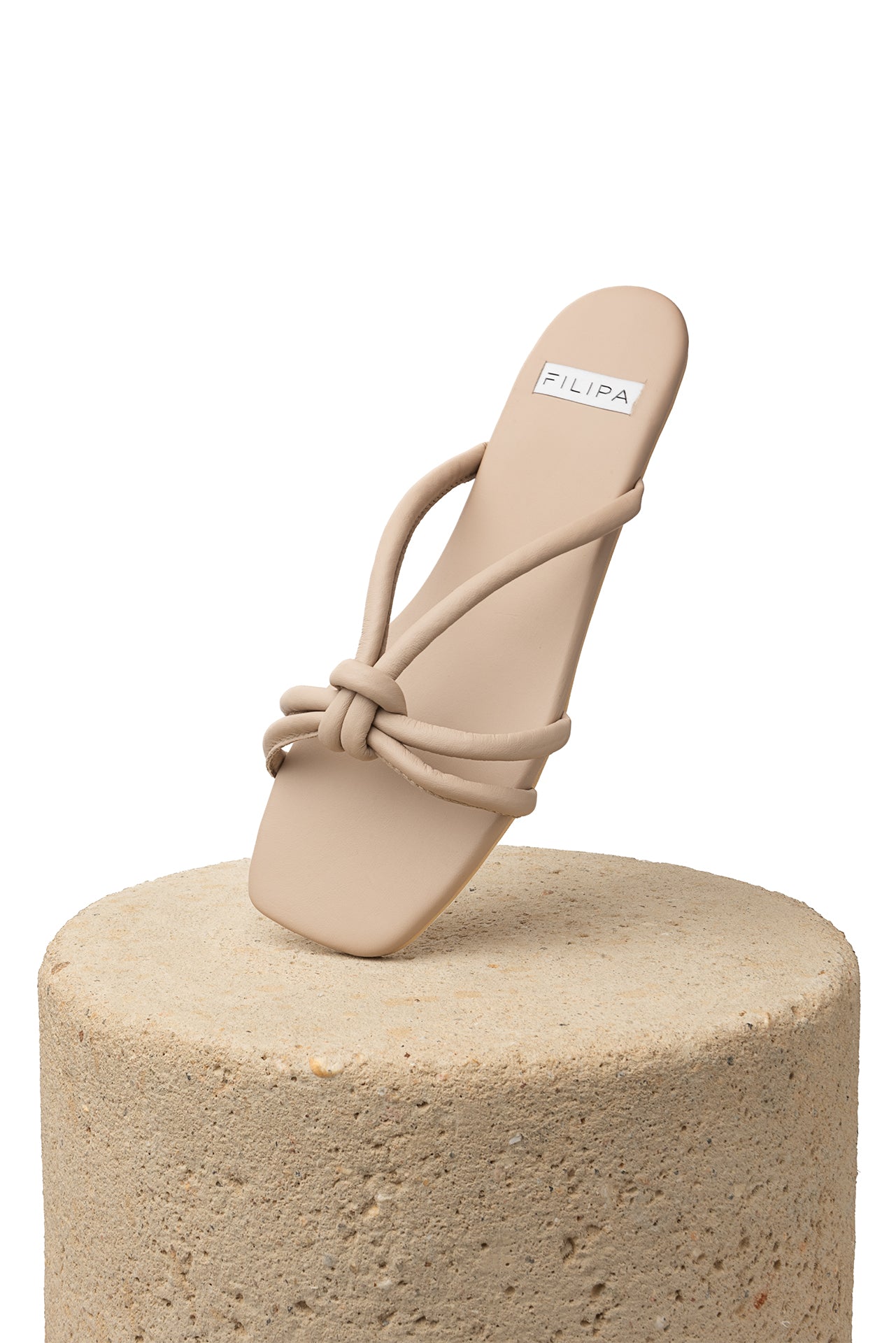 Zapato tipo sandalia plana de piel. Detalle de nudo en las tiras. Hechas a mano en cuero nappa de primera calidad extra suave. Tienen suela de goma flexible y son zapatos ultra livianos.