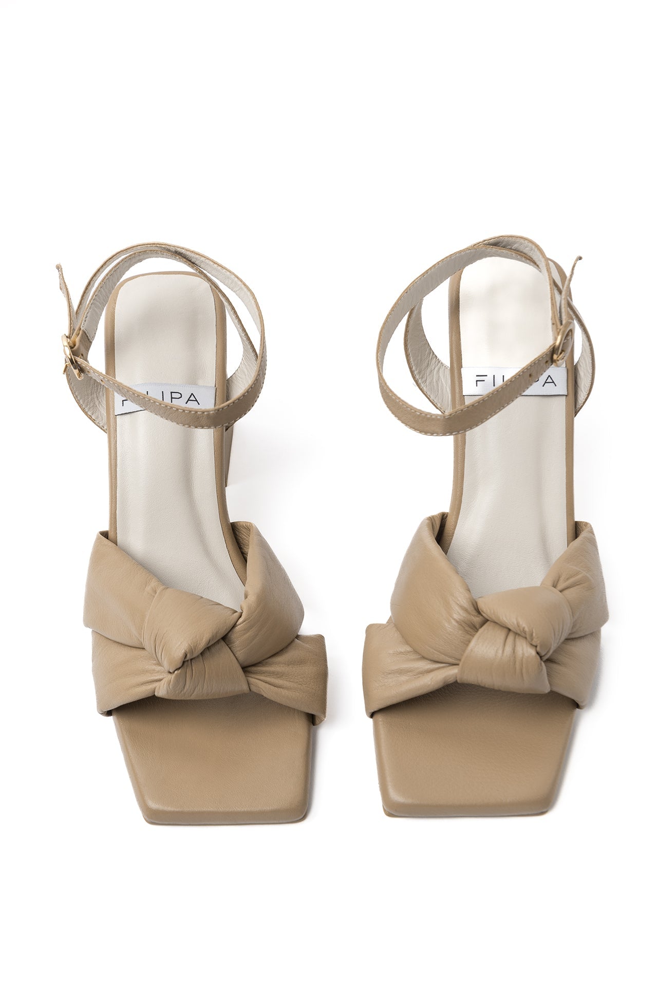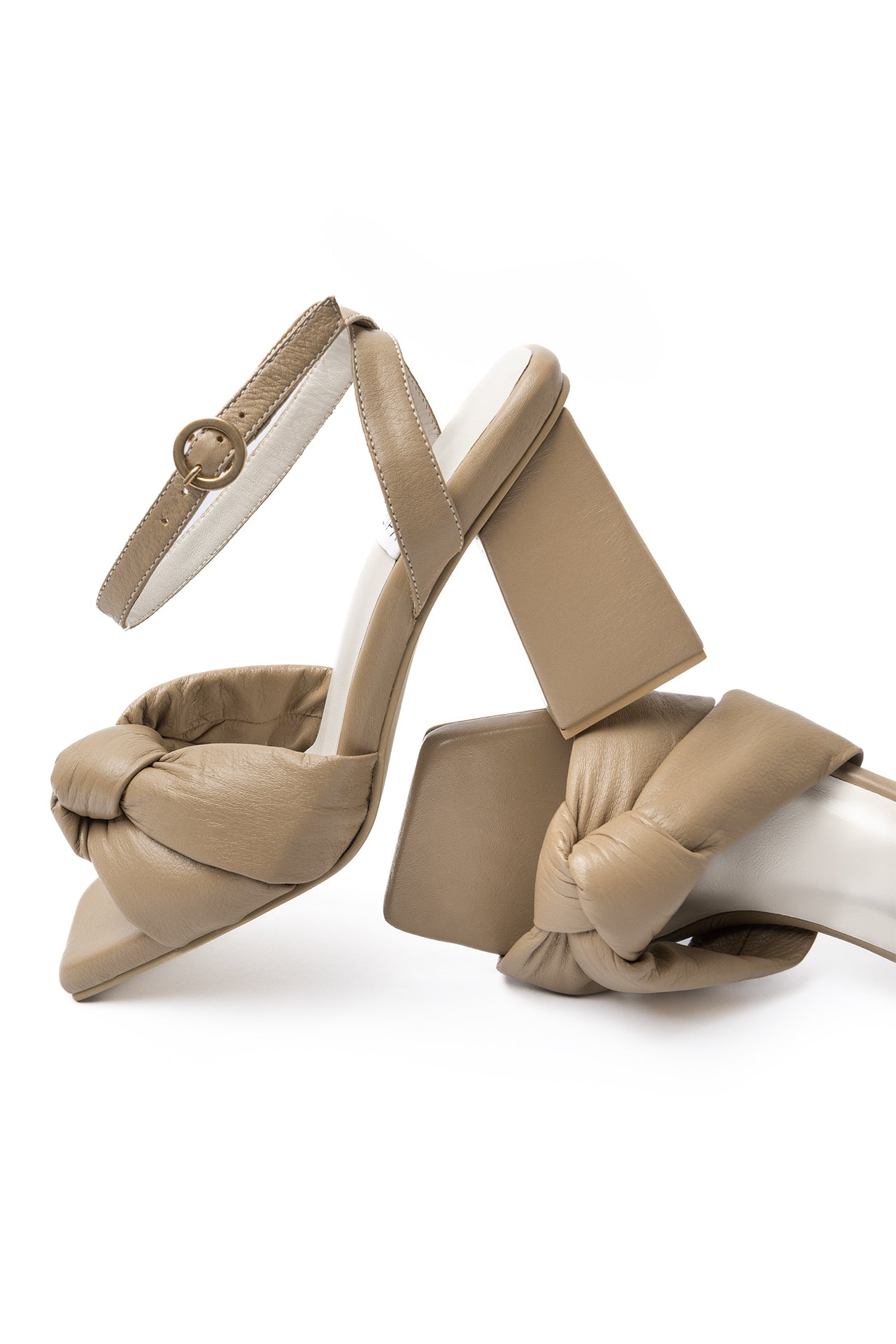 Sandalia de tacón de tiras acolchadas extra suaves con un nudo en el empeine que da comodidad por el agarre que se genera, y adicional le da un toque de diseño especial. Es un modelo casual q puedes usar con diferentes looks, especialmente para ocasiones formales o para noches de fiesta. Tiene un tacón alto y ancho, sofisticado y muy firme.