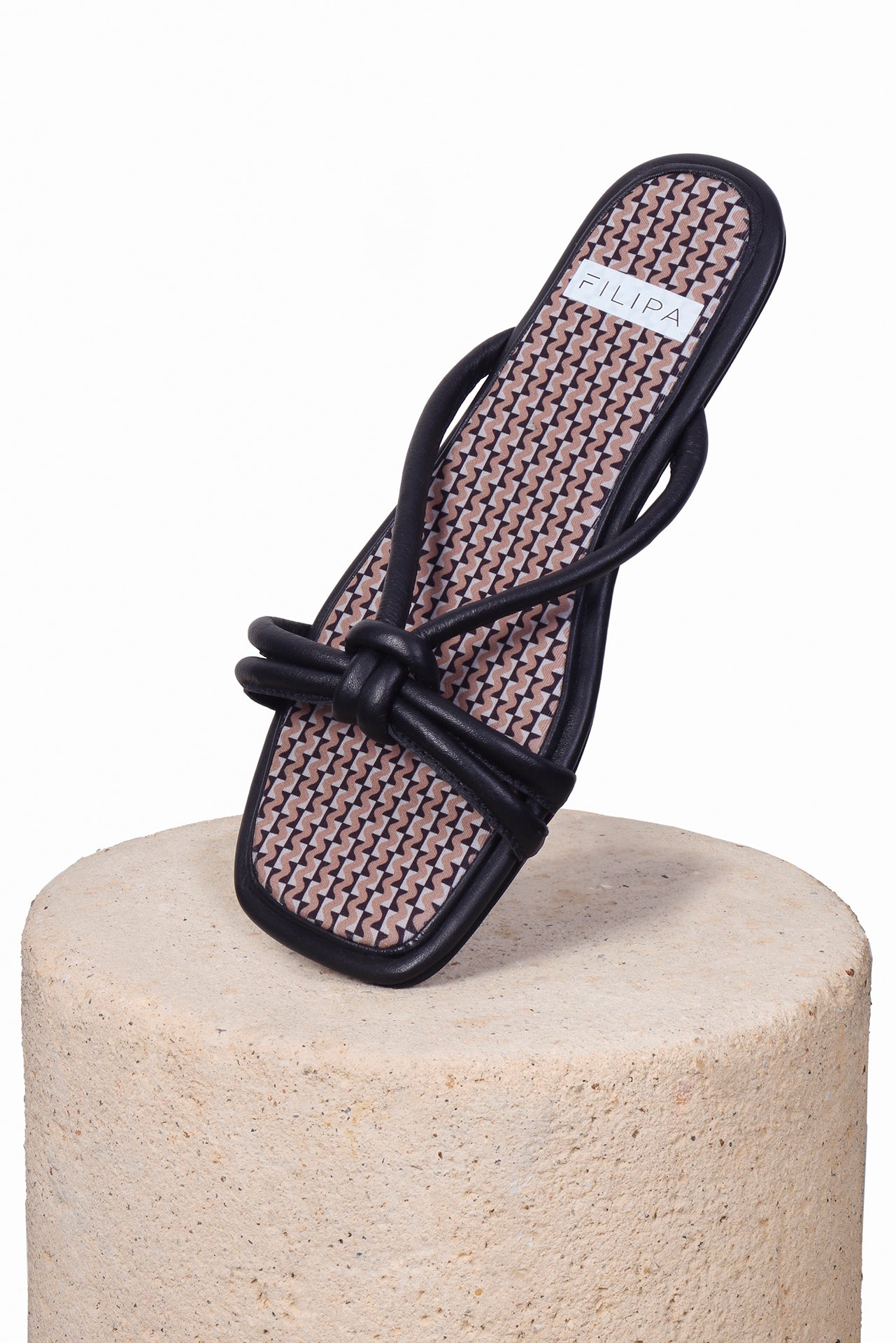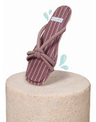 Sandalia plana con tiras entorchadas acolchadas en tela. Acabada en punta cuadrada. Tienen suela de goma flexible y son zapatos ultra livianos.