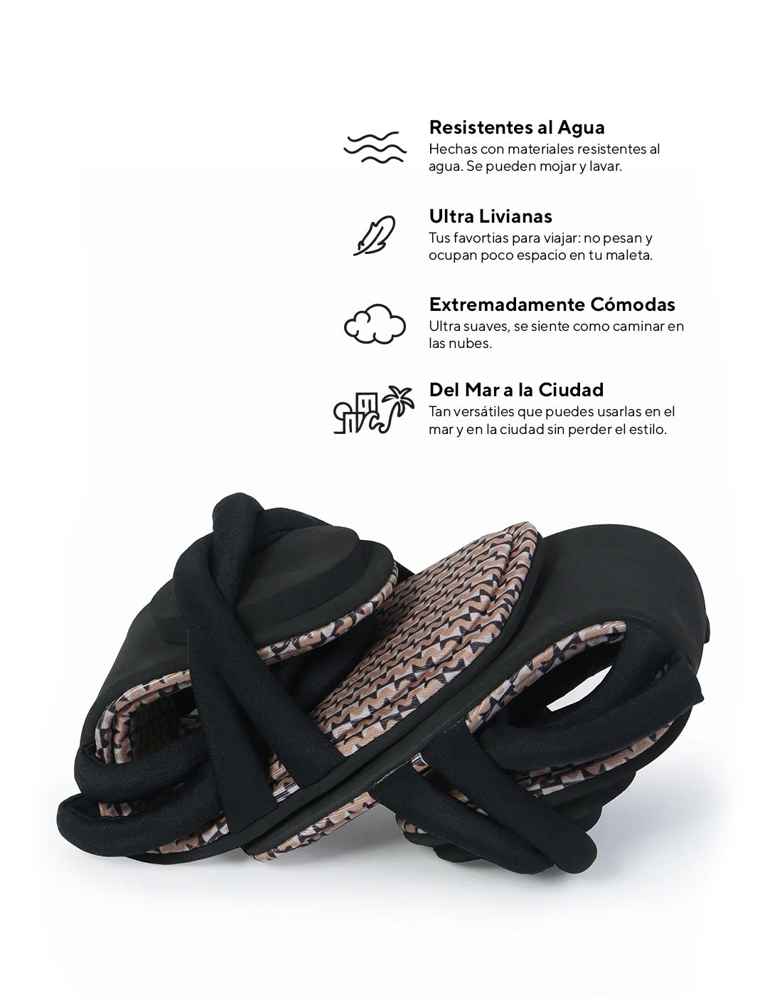 Eleva tu comodidad con nuestras sandalias resistentes al agua, elaboradas en telas estampadas que añaden un toque de color y frescura a tus días bajo el sol.